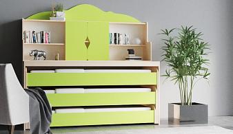 Кровать чердак Радуга 1,6 с ящиком и лестницей BMS