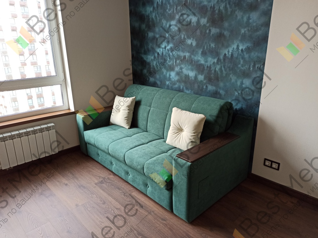 Всё не доходили руки сразу написать... Заказал месяц назад, изготовили примерно за неделю, привезли и доставили аккуратно и в срок. Немного поругались с грузчиками-водителями, т.к. хотели взять больше за подъём, но стоило им упомянуть о расценках на сайте - сразу согласились и уехали рассерженные. Всего привезли и подняли 2 части дивана - в одной был сам диван-аккордеон и подушки, в другой боковые подлокотники и фиксирующая их спинка.Затем сам собрал примерно за час, т.к. там правда простая конструкция оказалась, всё вставляется в пазы и закручивается гаечным ключом или даже плоскогубцами.К сожалению, пока так и не успел поспать на нём и оценить функционал, но есть пару нюансов о которых хочу рассказать и может стоит их даже доработать.Во-первых, он немного низковат - высота от пола вроде 40 см. Если бы добавить 3-4 см, то сидя человек ростом в +-170 см чувствовал себя на нём идеально, а так бедра не полностью лежат на поверхности дивана. То есть нужно вытягивать ноги дальше что бы полноценно положить их на поверхность.Во-вторых, если садиться достаточно близко к подлокотникам, то присутствует небольшой эффект проваливания в сторону подлокотника, как будто бы каркас под диваном немного меньше. (у меня размеры дивана полностью стандартные: 2030х920х1050)А так в целом пока доволен. Надеюсь не разочарует когда посплю на нём.
