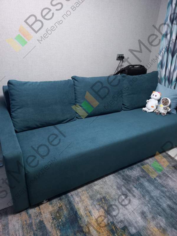 Диван выбирали для гостинной по своим размерам. Очень легко складывается и раскладывается. Ест вместительные ящики. У нас там хранятся диванные подушки. Брали с блоком независимых пружин. Покрытие велюр против кота. Всего 4 предмета. Легко собирается. Привезли в указанный срок. Очень довольны, спать удобно.