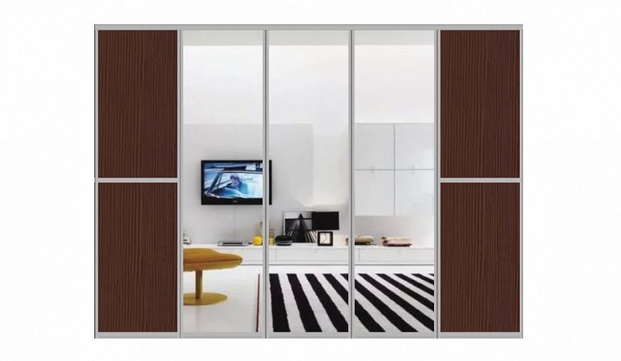 Двери-купе Никс 2 BMS станут универсальным решением для любого из помещений дома благодаря лаконичному стильному дизайну. Готовый пятидверный фасад объединил два глухих полотна из ЛДСП в темных древесных тонах и три полностью зеркальных с прочным каркасом из профиля в оттенке серебро. Раздвижные двери гармонично вписываются в современные интерьеры и помогут оборудовать удобную гардеробную. Купить двери-купе Никс 2 BMS с учетом оптимальных размеров вы всегда сможете в нашем интернет-магазине.
