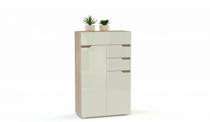 Комод Анталия С1 Люкс BMS сочетает в оформлении корпус натуральных древесных тонов и белоснежный глянцевый фасад, а роль декора играют ручки-вырезы. Высокая модель прекрасно вписывается в современные минималистичные интерьеры, помогая легко поддерживать порядок. Продуманная система хранения включает в себя выдвижные ящики для мелочей и вместительные распашные отделения с полками. Купить комод Анталия С1 Люкс BMS для меблировки спальни, гостиной или прихожей вы сможете в нашем интернет-магазине.