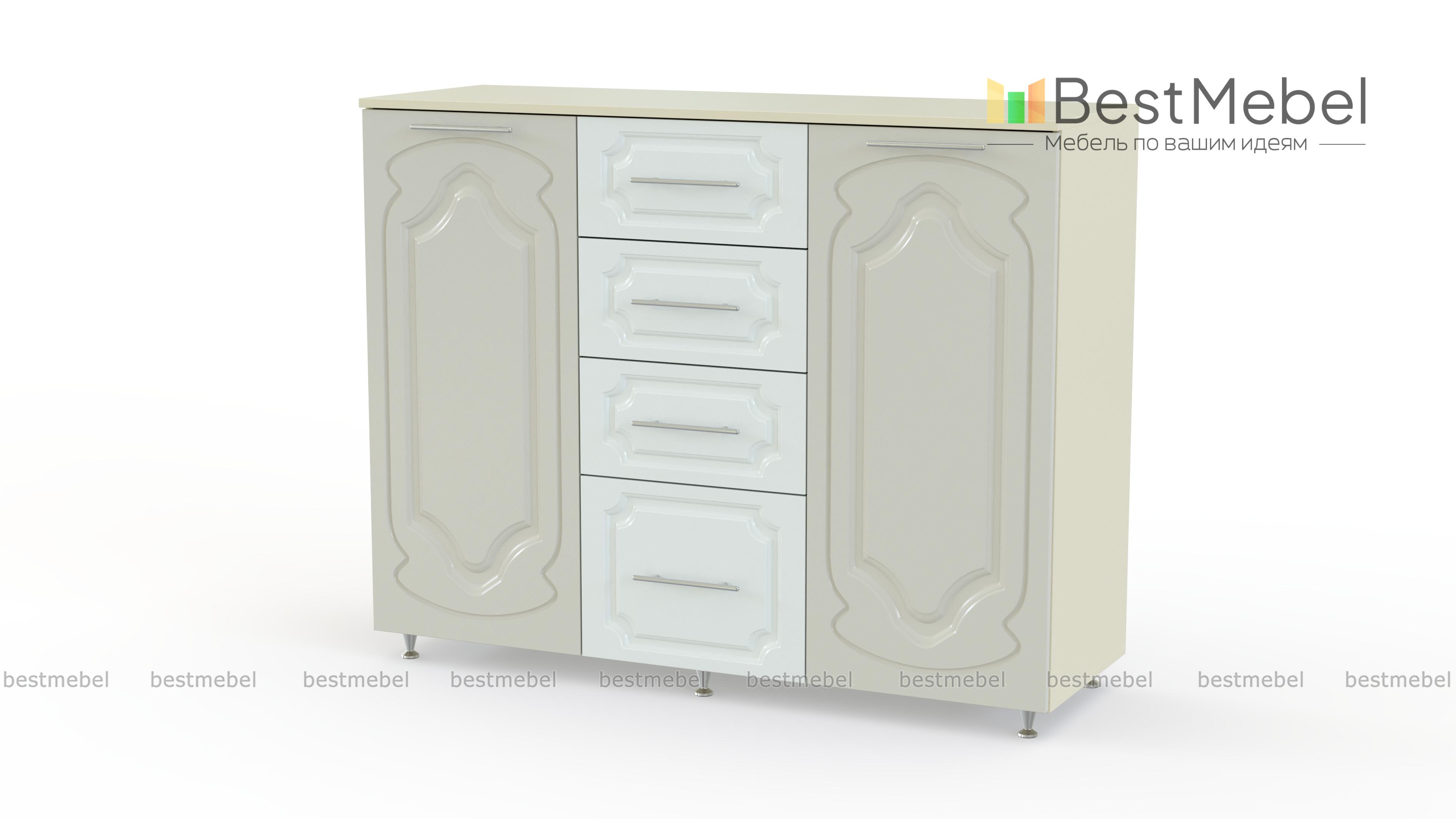Комод Берк-2 BMS с изящной фрезеровкой на фасаде по достоинству оценят поклонники классики. Вместительный трехсекционный комод, выполненный в светло-бежевой гамме, оборудован одним большим выдвижным ящиком и тремя малыми, а также распашными секциями с полками. Опоры с регулировкой высоты скорректируют неровности пола и придадут комоду устойчивость. Купить комод Берк-2 BMS для меблировки гостиной, спальни или прихожей вы сможете на сайте нашего интернет-магазина.