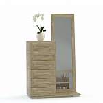 Комод Бетта 1 BMS, дополненный ростовым зеркалом, станет практичным решением для спальни или прихожей, помогая сэкономить пространство. Узкий комод, оборудованный шестью выдвижными ящиками для хранения одежды, домашнего текстиля и аксессуаров, располагается на едином основании с высоким прямоугольным зеркалом. Элегантная композиция с фрезерованными рамочными фасадами выполнена в насыщенных древесных тонах. Купить комод Бетта 1 BMS приглашаем в наш интернет-магазин с возможностью выбора цвета и фурнитуры.