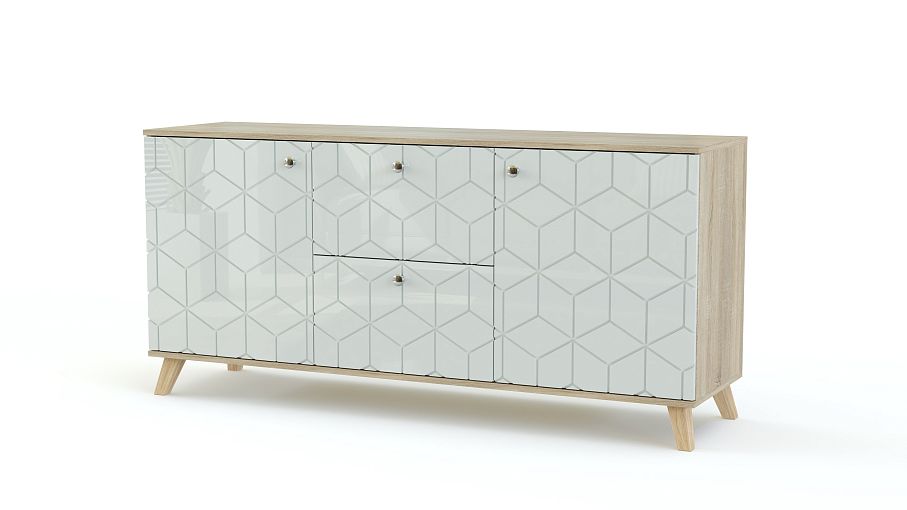 Комод Дания 1 BMS гармонично объединил практичность и оригинальность дизайна. Широкая модель дополнит популярные интерьеры в скандинавском или лофт стиле и разместит аппаратуру, предметы декора, домашний текстиль и множество бытовых мелочей. Продуманная система хранения включает в себя два выдвижных ящика и распашные отделения с полками, устойчивость обеспечивают высокие опоры. Корпус под массив дерева дополнен эффектным глянцевым фасадом с фрезерованным рисунком. Купить комод Дания 1 BMS по демократичной цене приглашаем в наш интернет-магазин.