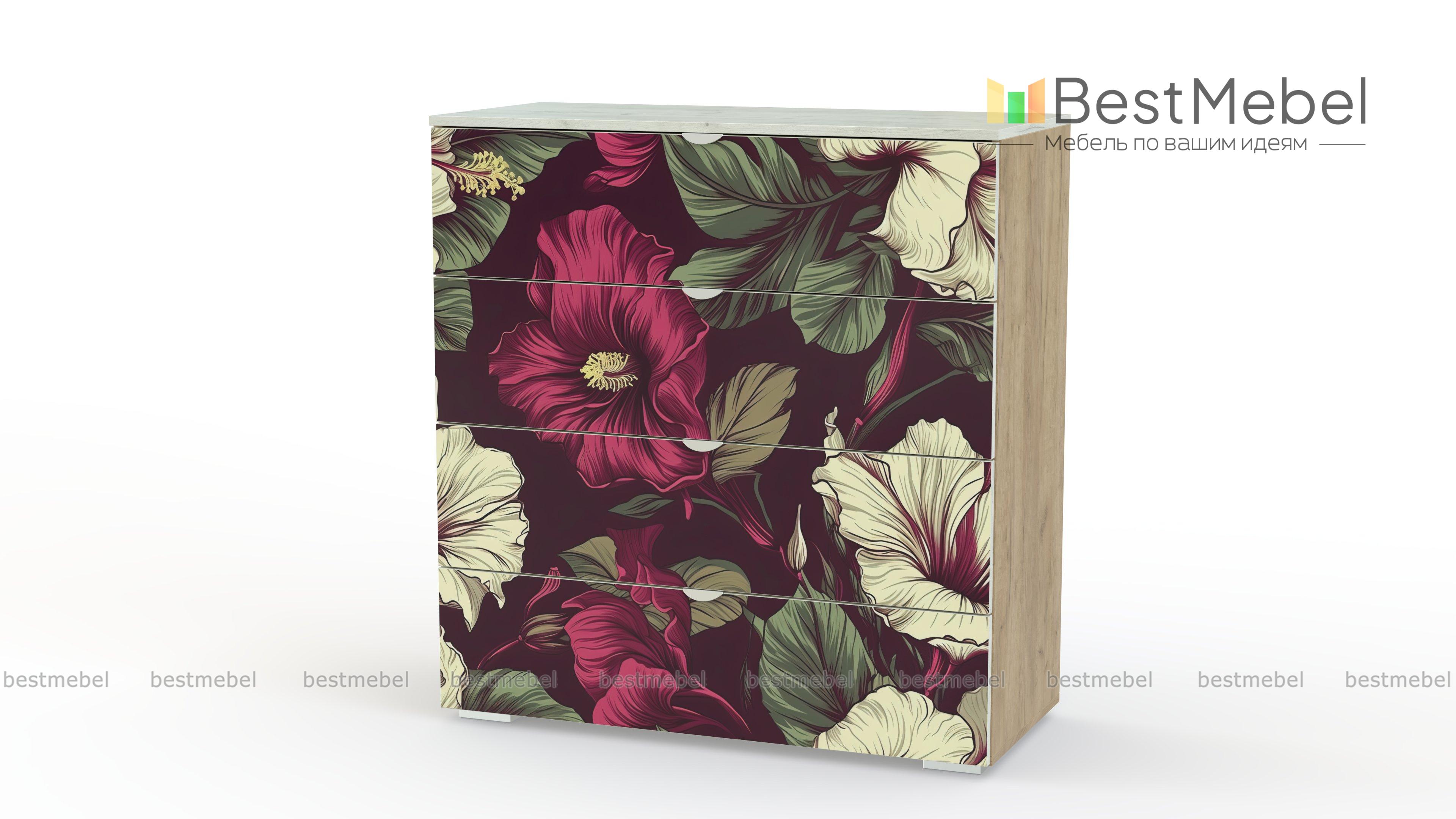 Комод Элоиза 18 BMS – для запоминающегося интерьера с яркой индивидуальностью. Роскошный цветочный принт выделяет комод на фоне другой мебели, а древесная фактура столешницы добавляет обстановке тепла. Для удобного и аккуратного хранения предусмотрены четыре вместительных бельевых ящика, легко выдвигающихся с помощью небольших торцевых ручек. Купить комод Элоиза 18 BMS приглашаем в наш интернет-магазин с выбором оптимальных размеров и цветовой гаммы.