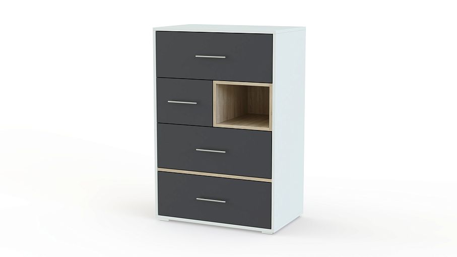 Комод Эван K-34 BMS предназначен для меблировки молодежных комнат и отличается современным дизайном и высокой функциональностью. Четыре классических выдвижных ящика дополняет выделенная другим цветом ниша, превращая удобную систему хранения для белья и одежды в стильный интерьерный акцент. Компактный комод может дополнить другие предметы серии или использоваться в интерьере независимо. Купить комод Эван K-34 BMS, который поможет легко поддерживать в комнате порядок, вы сможете с помощью нашего интернет-магазина.