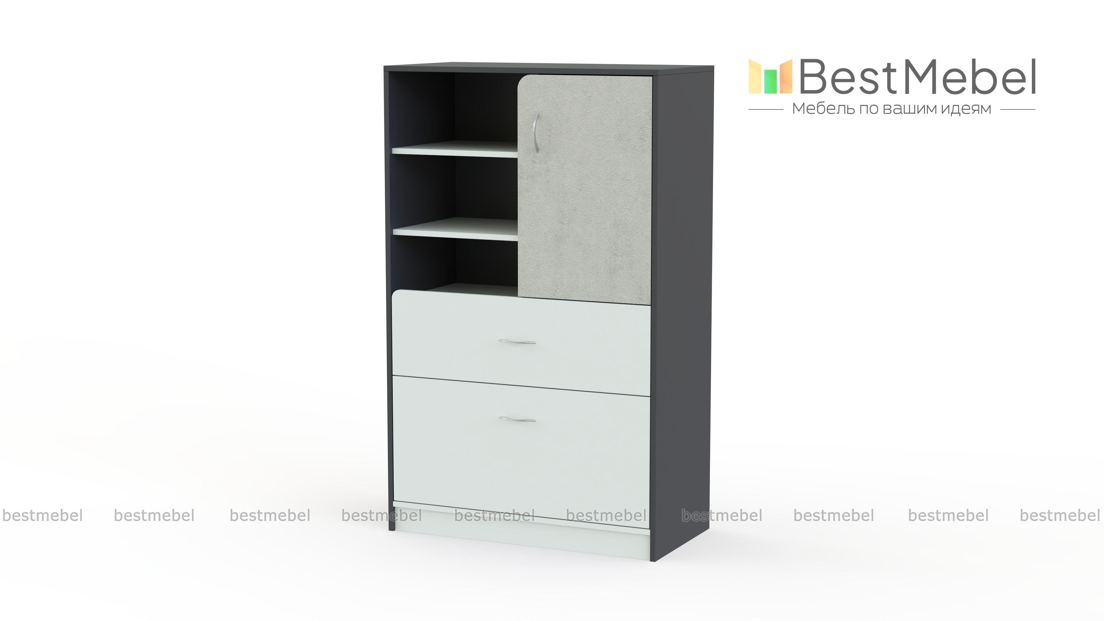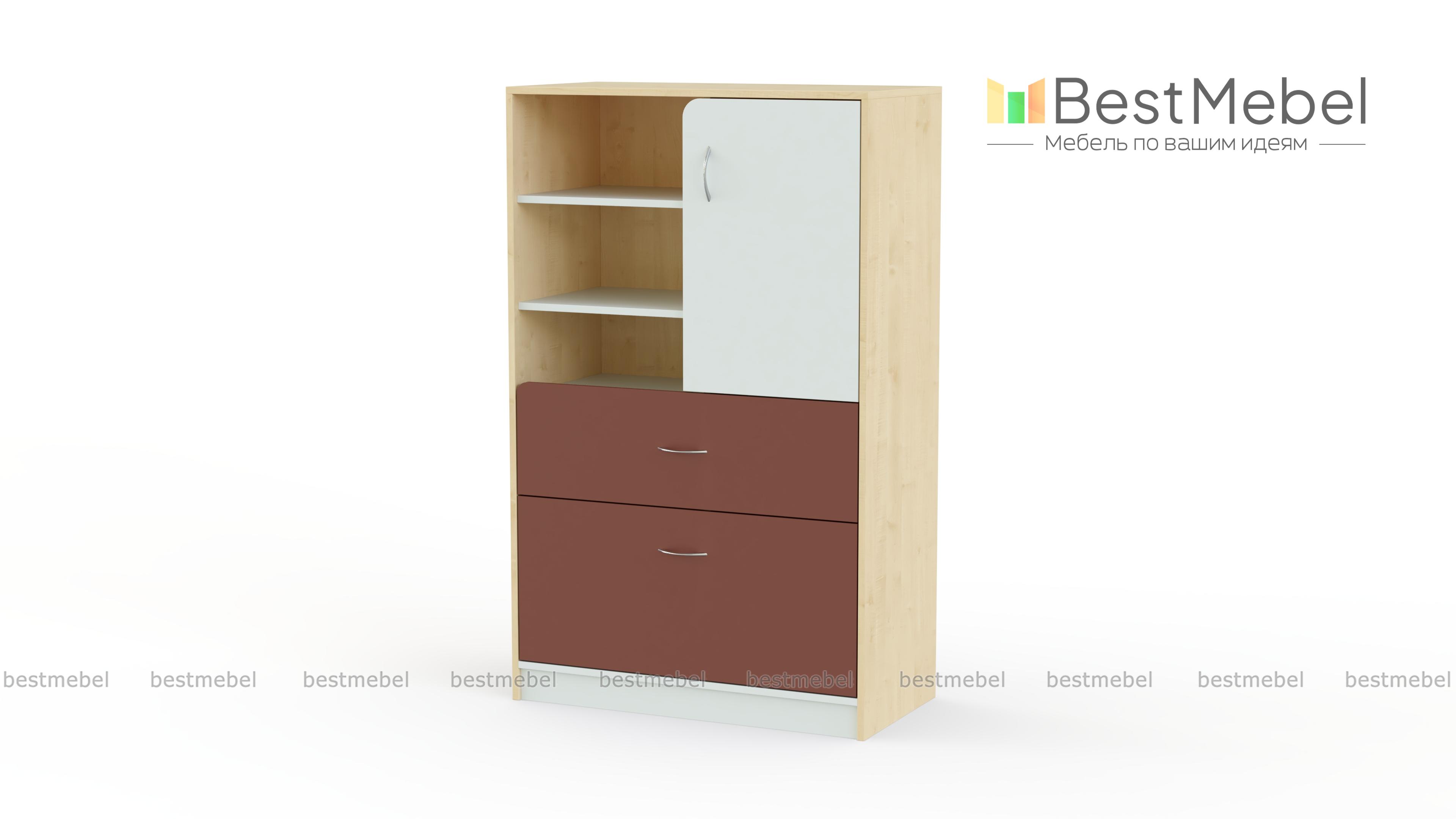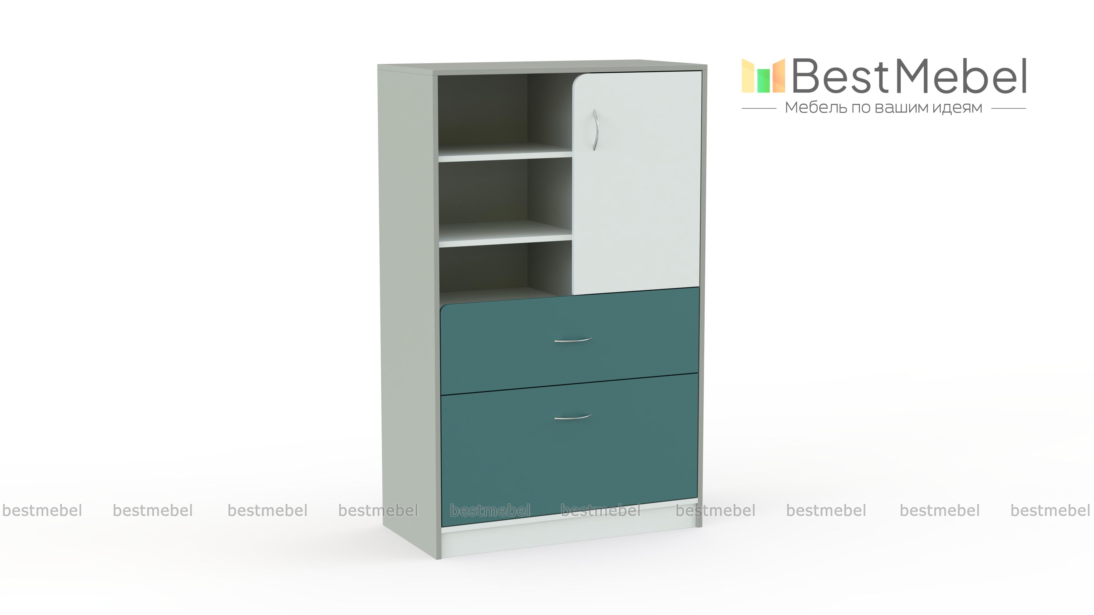 Комод IQ-07 BMS – высокая модель, объединившая функции классического комода и книжного шкафа. Прекрасный выбор для интерьера детской, комод выполнен в сочетании нейтральных оттенков с яркими вставками и оборудован всем необходимым для хранения игрушек, книг, разнообразных мелочей. В нижней части модели располагаются два выдвижных ящика разной глубины, в верхней – распашное отделение и открытые полки. Износостойкие и простые в уходе, поверхности надолго сохранят эстетичный вид. Купить комод IQ-07 BMS приглашаем в наш интернет-магазин.