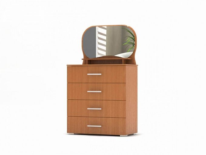 Комод КСЗ 5.2 BMS - это дополнительное место хранения для ваших вещей и удобный туалетный столик. Классический бельевой комод, оборудованный четырьмя плавно выдвигающимися ящиками, объединен с изящно вырезанным зеркалом. Нижний фигурный край овального зеркала касается открытой полочки с нишей, на которой будут всегда под рукой косметика, аксессуары и прочие мелочи. Купить комод КСЗ 5.2 BMS приглашаем в наш интернет-магазин с выбором фурнитуры и цвета по каталогу.