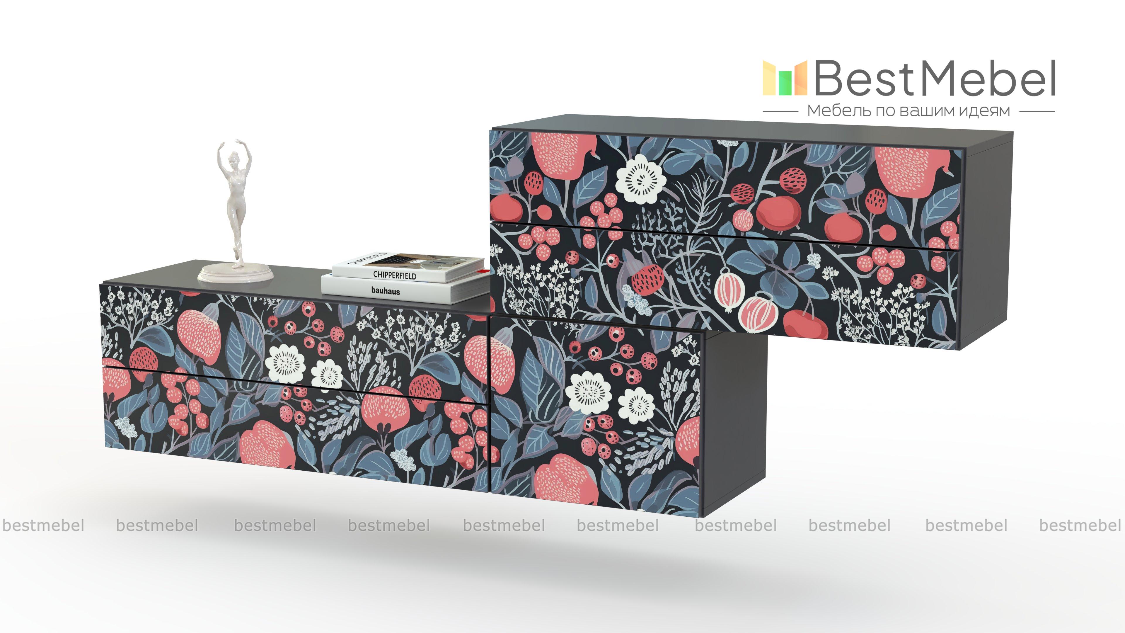Комод Ним 10 BMS состоит из двух подвесных модулей с выдвижными ящиками и одного распашного куба, расположенных ступеньками. Необычное конструктивное решение позволяет вам организовать удобное хранение мелочей и размещение декоративных предметов в любой из комнат. Яркий дизайн фасада, украшенного растительным узором, превращает комод в визитную карточку дома. Купить комод Ним 10 BMS с возможностью выбора цвета и размеров приглашаем в наш интернет-магазин.