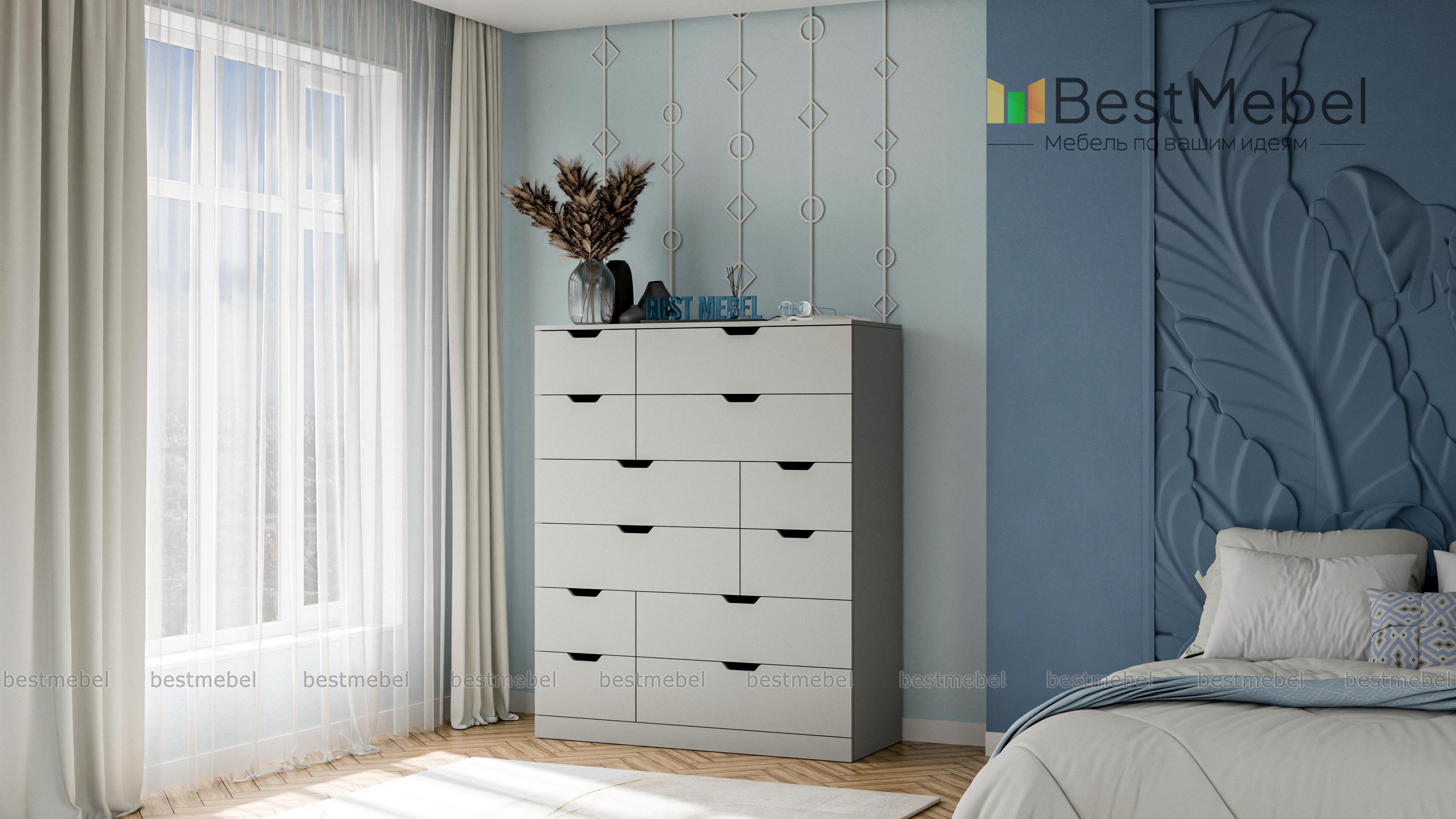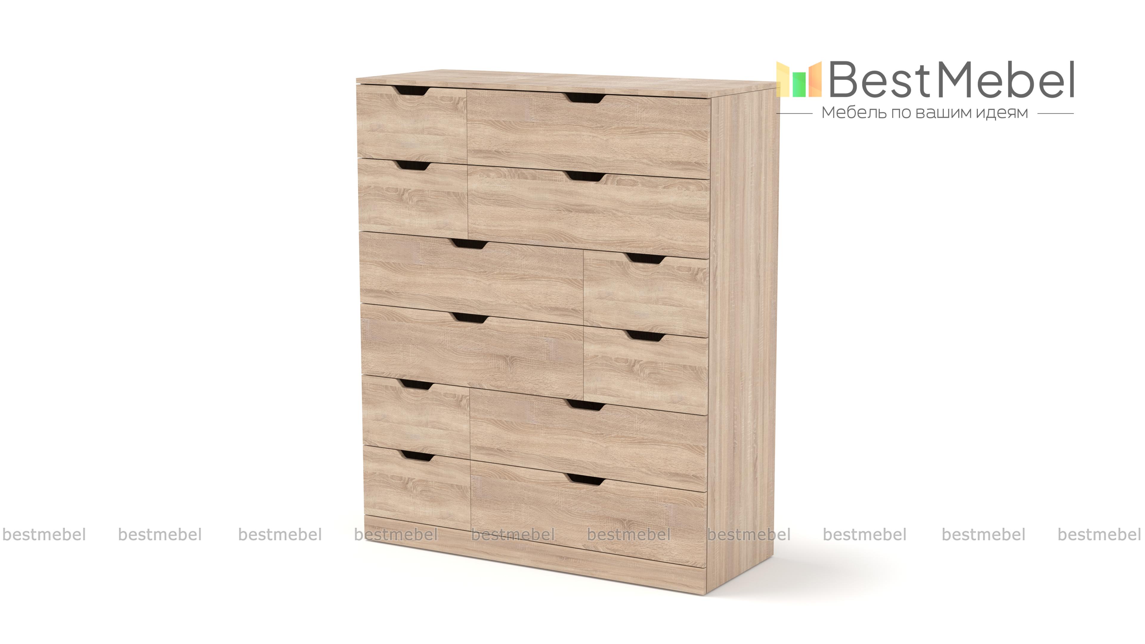 Комод Нордли Nordli 10 поможет систематизировать хранение важных мелочей, домашнего текстиля, рабочих материалов и еще многого другого. В шести малых и шести больших выдвижных ящиках все вещи будут на своих местах, и вам не придется тратить время на поиски. Легкая асимметрия и трапециевидные ручки-вырезы добавляют индивидуальности комоду минималистичного дизайна. Купить комод Нордли Nordli 10 для меблировки гостиной, спальни или кабинета приглашаем в наш интернет-магазин. Выбирайте мебель в стиле IKEA (ИКЕА) от производителя BestMebelShop!