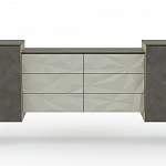 Комод Патина 12 BMS состоит из модуля с шестью выдвижными бельевыми ящиками и двух распашных тумб по бокам. Подвесная композиция станет не только местом хранения вещей, но и стильной альтернативой туалетному столику. В оформлении столешниц и фасадов комода использованы ламинированная плита, имитирующая массив дерева, и изящный 3D рельеф с отражающими свет гранями. Купить комод Патина 12 BMS с учетом необходимых размеров вы сможете на сайте нашего интернет-магазина.