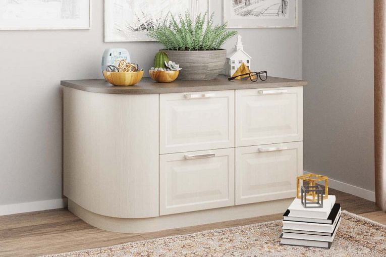 Комод радиусный Классик 9 BMS может использоваться как приставной элемент в модульном комплекте или задействовать угловое пространство. Практичная модель оборудована четырьмя выдвижными ящиками и распашным радиусным отделением для хранения разнообразных бытовых вещей, а на столешнице разместятся телевизор или предметы декора. Особенно эффектный вид комоду придают светлые фасады с рамочной фрезеровкой. Купить комод радиусный Классик 9 BMS для спальни или гостиной приглашаем к нам в интернет-магазин.