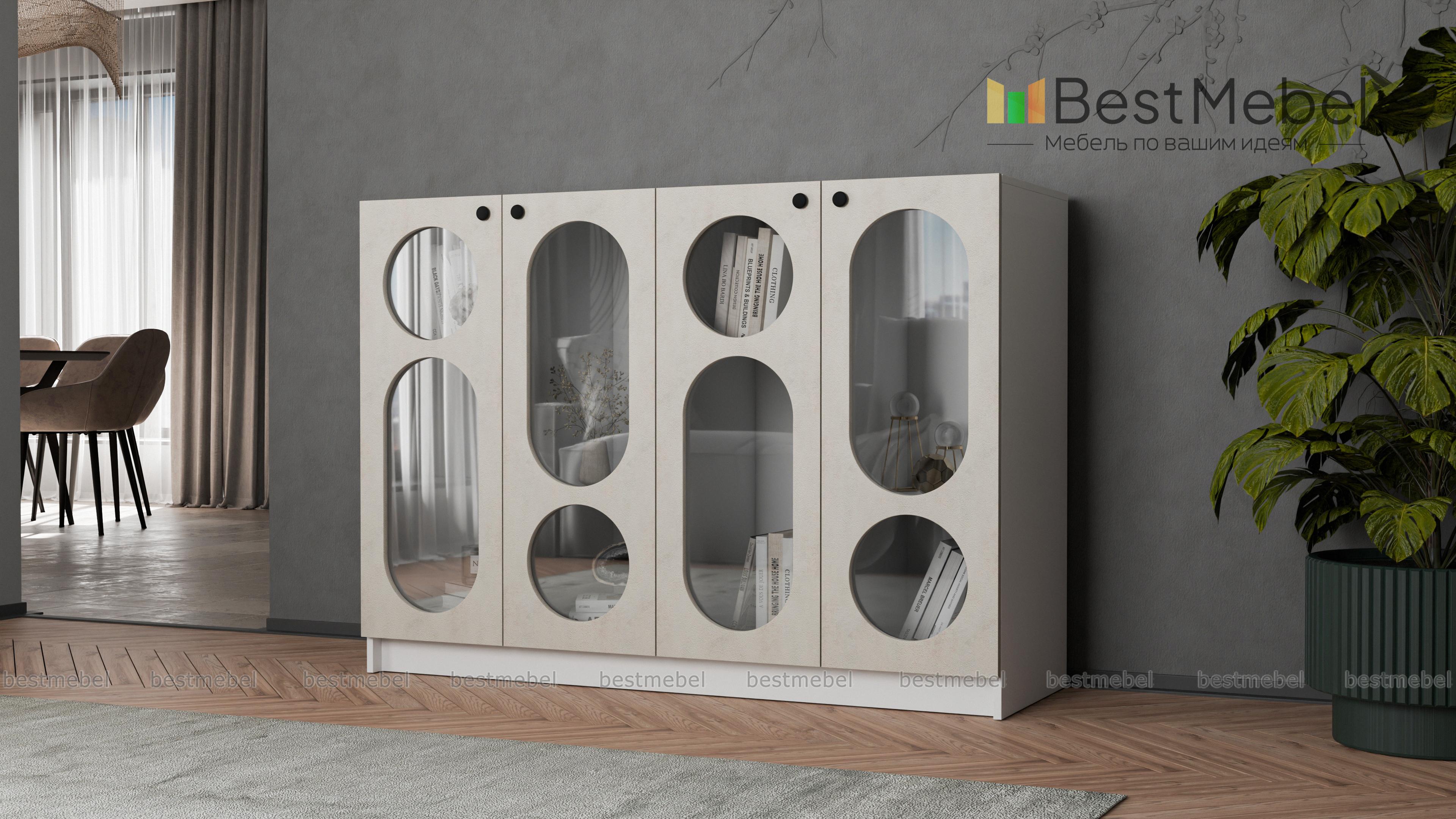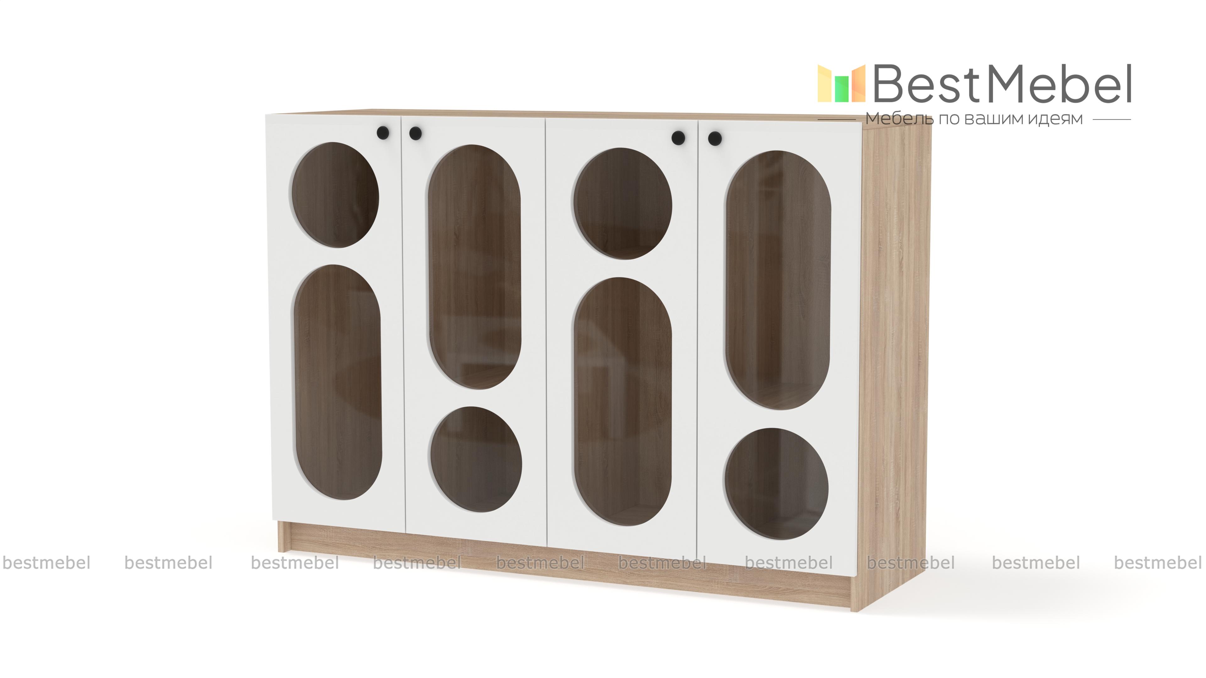 Комод Руди 3 BMS отлично вписывается в гостиные, молодежные комнаты и общественные пространства. Четыре распашные дверцы со стеклом выполнены из МДФ актуального оттенка и имеют округлые геометрические вырезы. Книги, посуда, органайзеры с мелочами и предметы декора будут выглядеть стильно на полках за фигурными стеклами витрины. Купить комод Руди 3 BMS вы всегда сможете на сайте нашего интернет-магазина, подобрав необходимые размеры и оттенки по каталогу.