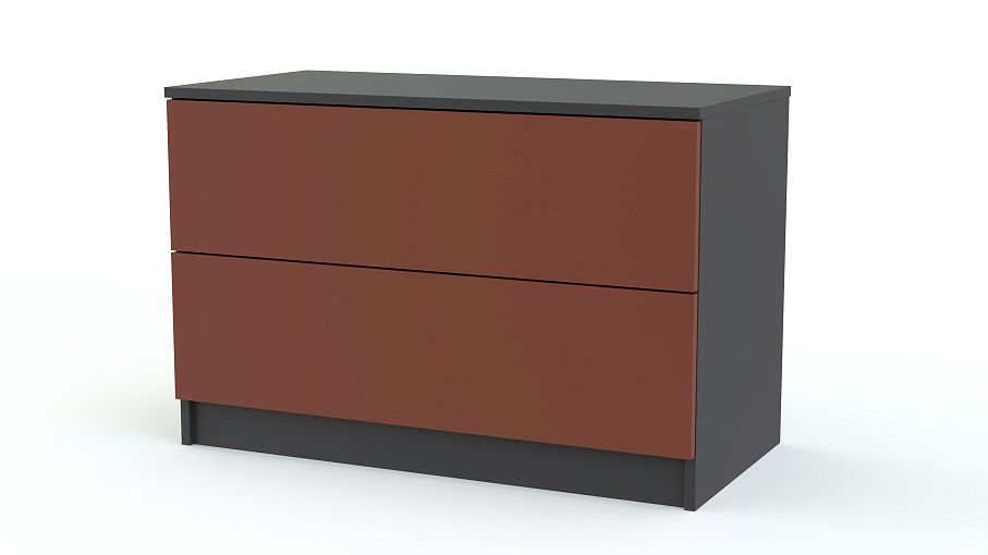 Небольшой стильный комод Шайн 1 BMS - яркая деталь в интерьере современной квартиры или офиса. Благодаря компактным размерам и высокой эргономичности он станет удачным решением для малогабаритного помещения. Два вместительных выдвижных ящика с системой открывания push-to-open и широкая столешница позволят разместить документы, предметы гардероба, технику и декоративные элементы. Модель максимально лаконична по форме и дизайну, но смотрится выигрышно за счет контрастных насыщенных цветов и матовых фасадов.
