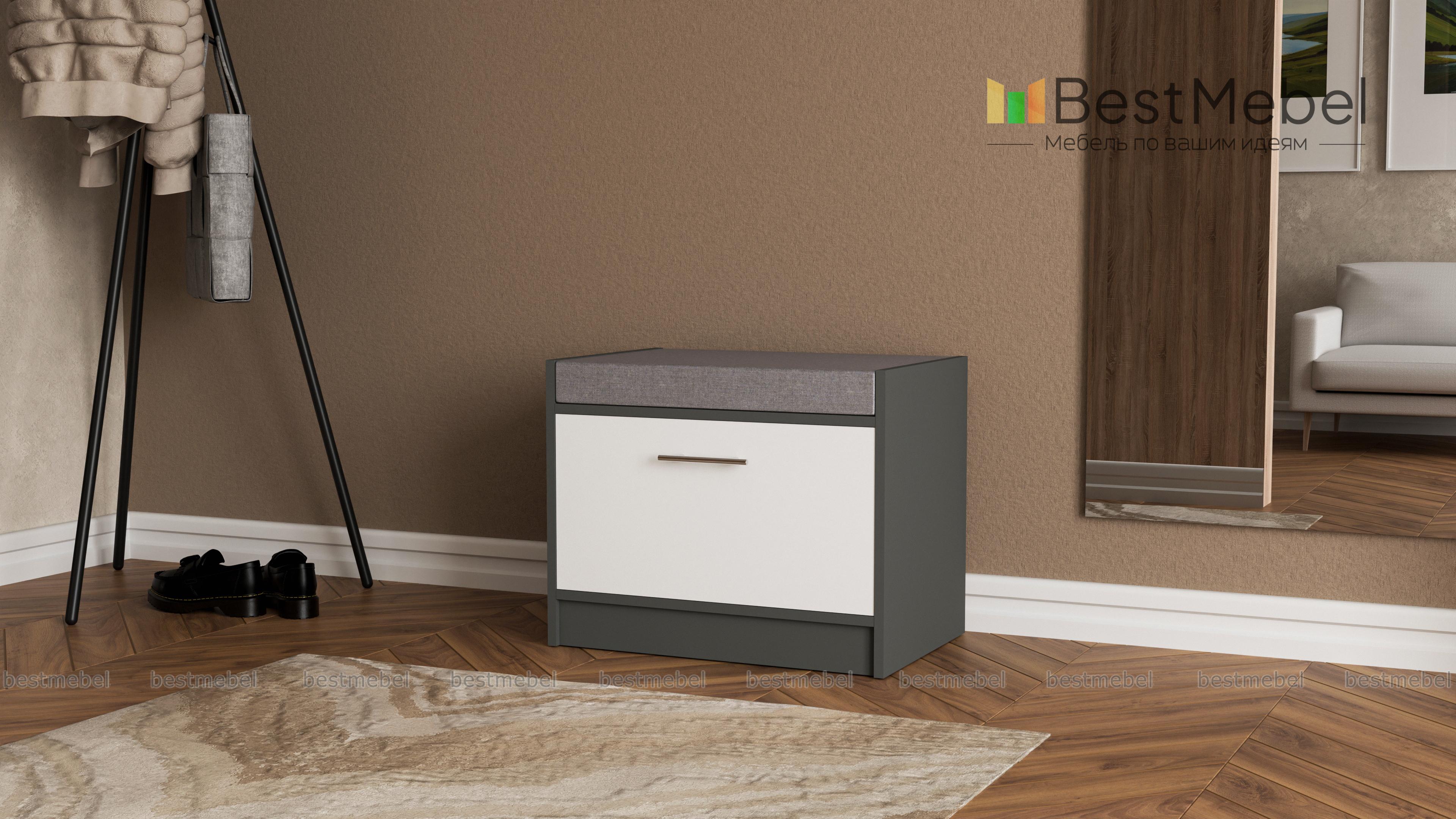 Обувница Атти 4 BMS отличается необходимыми мебели для небольшой современной прихожей скромными габаритами и высокой функциональностью. Комбинированная модель оборудована одним просторным откидным отделением для обуви и комфортным сиденьем в мягкой обивке, под которым скрывается отсек для хранения аксессуаров. В оформлении банкетки скомбинированы контрастные черно-белые тона. Купить обувницу Атти 4 BMS и дополнить интерьер практичной деталью вам всегда поможет наш интернет-магазин.