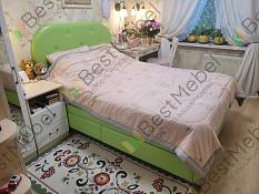 Заказала данную кровать в обивке экокожей Санторини 406, сделали по моим размерам под нестандартный матрас. 4 ящика сделали меня счастливой, утром вставать не хочется с такой кроватки !
