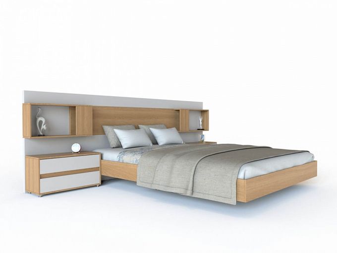 Кровать с полками Мая 25 BMS будет эффектна в просторных помещениях и подчеркнет визуальную легкость современной спальни. Выполненная в сочетании белого и светлых древесных тонов, модель на высоких опорах создает иллюзию парящей в воздухе мебели. Комбинированная широкая спинка изголовья с открытыми полочками позволит выигрышно разместить книги, декоративные предметы, необходимые личные вещи владельцев. Купить кровать с полками Мая 25 BMS по лучшей цене вы сможете в нашем интернет-магазине.