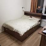 Очень крутая кровать, я в восторге! Лучше чем ожидала, очень тяжелая получилась и устойчивая. Полка просто супер! Ящик который внутри шикарный! Он во всю высоту, а это дополнительная ниша, от которой вы будете в восторге. Выдвижные ящики на колесиках, не обратила на это внимания при заказе. Один большой минус кровать собирали очень долго и нудно. Инструкция не понятна вообще. Собирали сами просто по фото из заказа. Заказывайте сборку, экономьте время и нервы)