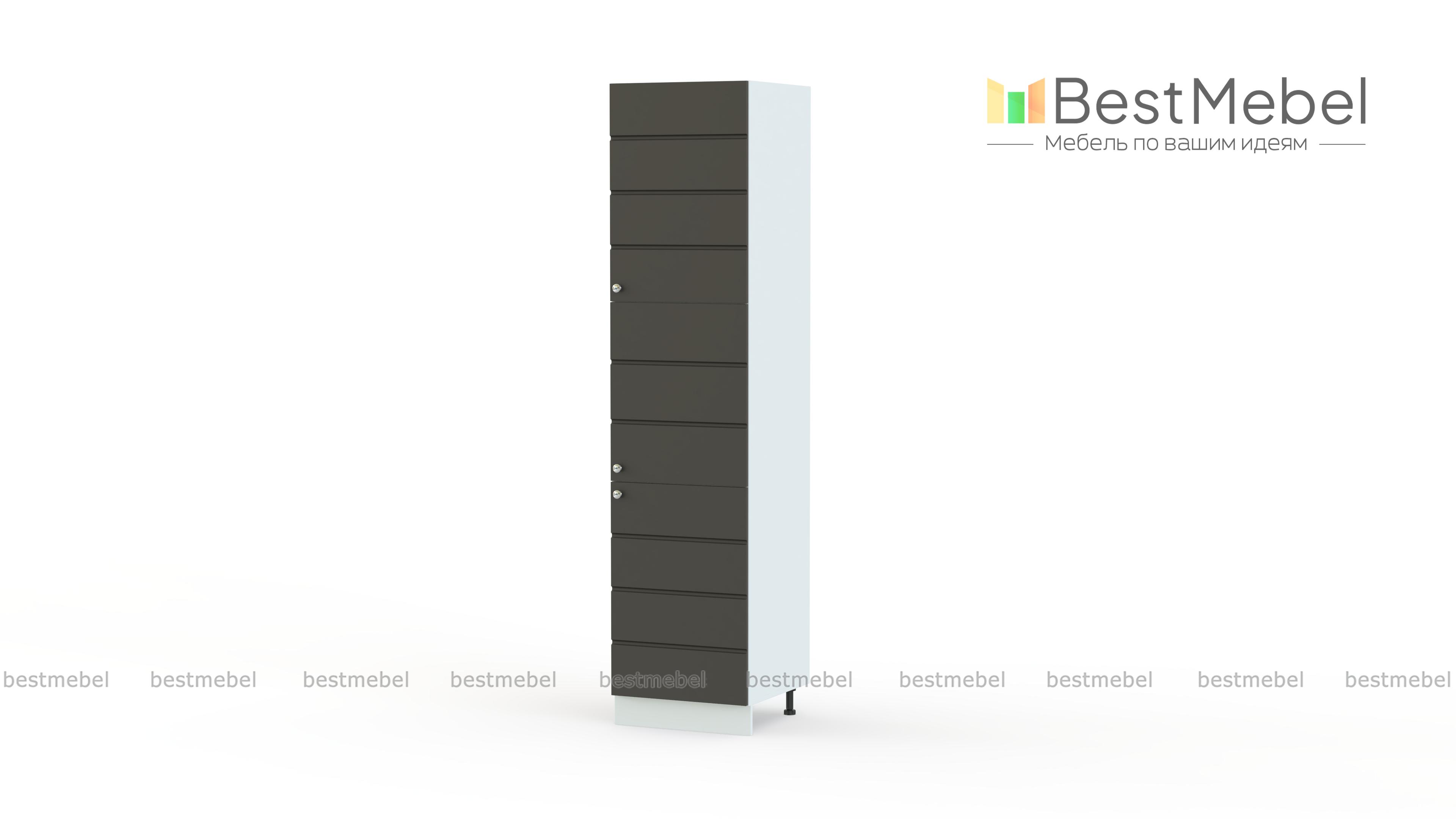 Пенал Квадро BMS может использоваться и самостоятельно, и как часть комплекта. Компактная, но вместительная за счет высоты, модель оборудована тремя распашными дверцами и просторными полками, на которых можно удобно разместить все необходимое на кухне – от продуктов до разнообразной утвари. Фасад с матовой текстурой выполнен в актуальном оттенке и декорирован стильными круглыми ручками. Купить колонну Квадро BMS для современного кухонного интерьера приглашаем по демократичной цене в наш интернет-магазин.