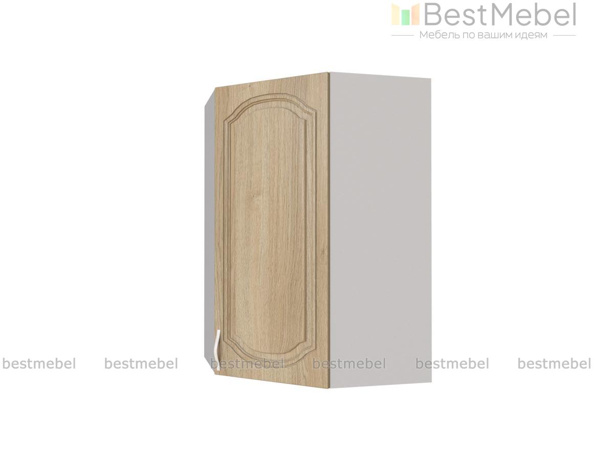 Шкаф навесной Жасмин угловой BMS служит для присоединения прямых модулей в кухонном комплекте, помогая эффективно использовать пространство. Трапециевидный шкаф на редкость вместителен и удобен для хранения как посуды, так и продуктов. Фрезерованный фасад в древесных тонах прост в уходе, отличается износостойкостью и станет частью уютного традиционного интерьера. Купить шкаф навесной Жасмин угловой BMS приглашаем в наш интернет-магазин, подобрав оптимальные параметры.