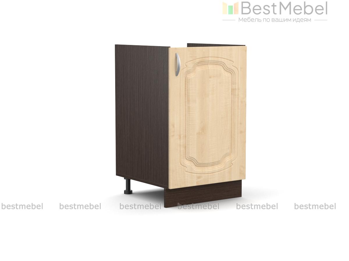 Шкаф нижний под мойку с 1-ой дверцей Настя BMS – необходимый элемент кухонного гарнитура. Классическая модель оборудована распашной дверцей и просторным внутренним отделением, сплошная задняя стенка отсутствует. Удобный в малогабаритных помещениях, небольшой шкаф разместит мойку, мусорный контейнер и скроет коммуникации, сделав интерьер эстетичным. Устойчивость конструкции обеспечивают регулируемые опоры, закрытые цоколем. Купить шкаф нижний под мойку с 1-ой дверцей Настя BMS с изящным фрезерованным рисунком приглашаем в наш интернет-магазин.