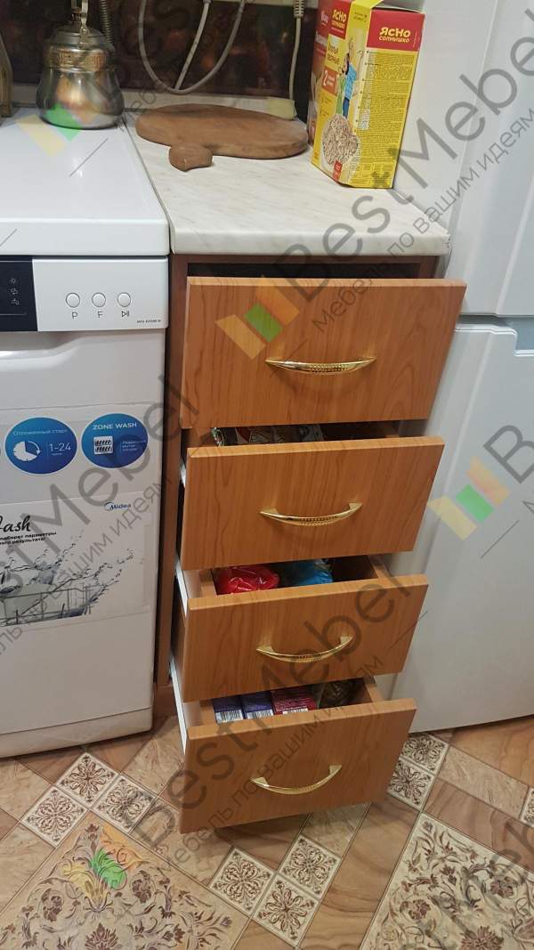 Очень был нужен на кухню шкафчик с ящиками, причем не совсем стандартного размера, была очень рада тому , что могу выбрать свои параметры до миллиметра. Сделали хорошо, единственное внутренние части от ящичков красились и в некоторых деталях (верхней) не было дырочек для крепления. А инструкция просто шедевр 20 из 10 , просто картиночка с номерами, парень дольше собирал, чем планировали) НО!!! очень довольна заказом, выглядит здорово, удобный, а цена как по мне очень приятная!
