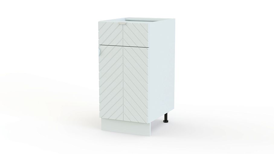 Шкаф нижний с дверцей и ящиком Анаис BMS станет частью стильного кухонного гарнитура. Светлый фасад украшает эффектный диагональный рельеф, полукруглые торцевые ручки выполнены в тон фасаду. Для вашего удобства этот компактный по ширине шкаф оборудован как выдвижным ящичком для мелочей, так и распашным отделением под посуду или продукты. Купить шкаф нижний с дверцей и ящиком Анаис BMS вы сможете в нашем интернет-магазине, по желанию изменив цвет и размеры.