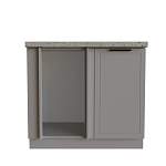 Шкаф нижний угловой Тетчер BMS предназначен для стыковки левого и правого крыла кухонного гарнитура. Модель прямой конструкции оборудована с фронтальной части распашной дверцей, внутреннее пространство представляет собой одно просторное отделение. Фрезерованный фасад выполнен в общем для всех предметов серии стиле и отличается матовой поверхностью, устойчивой к влаге и выгоранию. Устойчивость шкафу обеспечат регулируемые пластиковые опоры. Купить шкаф нижний угловой Тетчер BMS вы сможете в нашем интернет-магазине, подобрав необходимые параметры.
