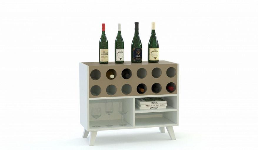 Стеллаж Перу 4.10 BMS, предназначенный специально для хранения алкоголя, станет элементом дизайна сканди-интерьера. Низкая модель на высоких скошенных ножках выполнена в нейтральной бело-бежевой гамме. Для удобного размещения бутылок с винами, бокалов и разнообразных бытовых вещей стеллаж оборудован тремя открытыми секциями разной высоты, круглыми ячейками и просторной столешницей. Купить стеллаж Перу 4.10 BMS для меблировки кухни или гостиной вы сможете в нашем интернет-магазине.