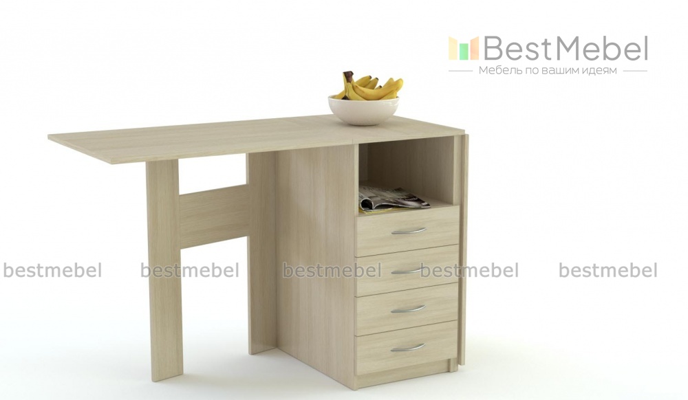 Кухонный стол Лори 2 BMS выполнен в светлых древесных тонах и легко впишется в интерьеры разного типа. Вместительная тумба с четырьмя выдвижными ящиками и нишей дополнена складными створками, которые быстро и просто превращают ее в компактный или большой обеденный стол с прямоугольной столешницей. Надежная конструкция станет залогом комфортной эксплуатации и долгого срока службы. Купить кухонный стол Лори 2 BMS и сохранить полезную площадь кухни или гостиной вам поможет наш интернет-магазин.