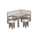 Современный кухонный уголок Норд У BMS, выполненный в модном светлом оттенке под массив дуба с мягкими вставками из искусственной кожи, станет удачным дополнением интерьера в скандинавском стиле. В комплект входят практичный угловой диван, который позволит по максимуму использовать свободную площадь, простой прямоугольный стол на основательных, устойчивых ножках и два табурета. Боковины декорированы планками в тон. Под сиденьем располагается ниша для хранения мелочей.