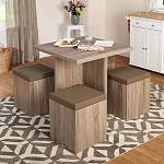 Компактная обеденная группа в современном стиле Квадро BMS станет удачным дополнением малогабаритных квартир и студий. Квадратной формы столик и четыре пуфа позволят рационально спланировать обеденную зону на небольшом пространстве. Задвинутые под стол, пуфики практически не занимают места. Обтянутые мягким кожзамом бежевых тонов сиденья съемные, внутри располагаются вместительные отделения для хозяйственных мелочей. Отличная цена на комплект ждет вас в нашем интернет-магазине.