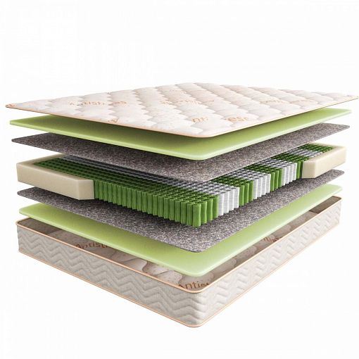 Матрас Sleep Tonic Yoga - мягкая модель на основе экологичных антибактериальных наполнителей. Комбинация независимого пружинного блока 9 zone Hard Pro и «дышащей» пористой пены с эвкалиптовым экстрактом позволяет создать спальное место с высоким уровнем поддержки и защитой от болезнетворных микроорганизмов. Изготовленные из сверхпрочной проволоки пружины надежно изолирует термовойлок, а борта закрыты слоем ППУ. Трикотажный чехол Antistress с пеной и холлофайбером увеличивает комфортность матраса, помогая полностью расслабиться и снять усталость. Купить матрас Sleep Tonic Yoga вы сможете на сайте нашего интернет-магазина.