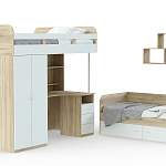 Детская комната Аспер 1 BMS поможет эффективно использовать пространство и создать современный, функциональный интерьер. Двухъярусная кровать оборудована просторным спальным местом и расположенными на первом ярусе платяным шкафом и компьютерным столом с надстройкой, а дополняют композицию кровать с бельевыми ящиками в основании и навесная книжная полка. Корпус бежевого цвета сочетается с белыми фасадами. Купить детскую комнату Аспер 1 BMS приглашаем выгодно в наш интернет-магазин.