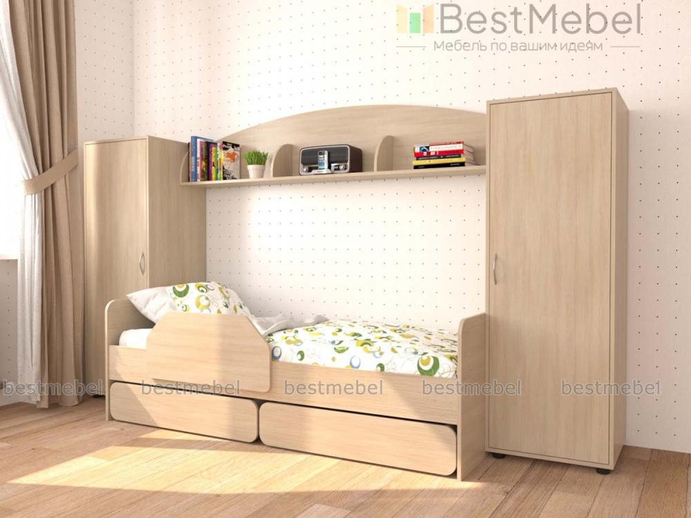Детская комната Миф 20 BMS поможет создать уютный, комфортный и безопасный интерьер. Модульная композиция станет отличным выбором для комнаты малышей благодаря компактным размерам, скругленным углам кровати и наличию защитного бортика. Комплект включает в себя кровать с выкатными ящиками для постельного белья и игрушек в основании, пеналы, оборудованные полками и штангой, а также межсекционную книжную полку. Купить детскую комнату Миф 20 BMS приглашаем в наш интернет-магазин по доступной цене.