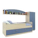 Детская комната Миф 21 BMS объединяет комфортную зону отдыха и продуманную систему хранения. Модульный комплект состоит из кровати с защитным бортиком и распашными шкафчиками в основании, двухдверного платяного шкафа и навесной книжной полки. Разноплановые отделения помогут разместить одежду ребенка, книги и игрушки, а залогом безопасности станут скругленные углы предметов. Купить детскую комнату Миф 21 BMS, выполненную в сочетании древесных тонов и глянца с оттенком металлик, приглашаем недорого в наш интернет-магазин.