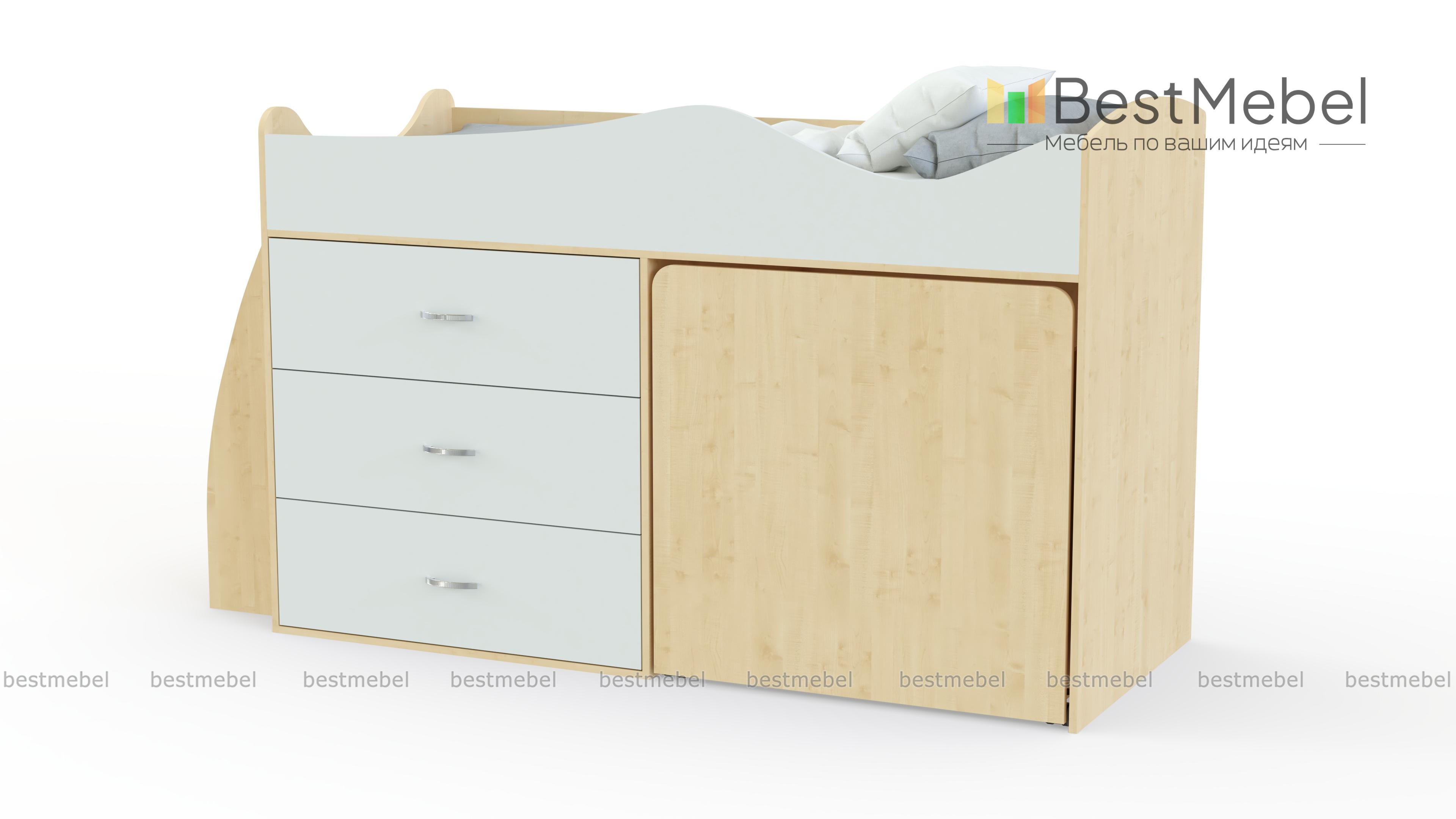 Детская кровать Карлсон Микро 2 BMS с выдвижной рабочей зоной поможет эффективно использовать пространство небольшой комнаты. На втором ярусе располагается комфортное спальное место, закрытое защитными бортиками, а первый занят встроенным комодом для удобного хранения детской одежды и постельных принадлежностей. Торцевая лестница с металлическими перекладинами позволит ребенку легко забраться в кровать. Купить детскую кровать Карлсон Микро 2 BMS вы сможете в нашем интернет-магазине, подобрав размеры и цветовое решение.
