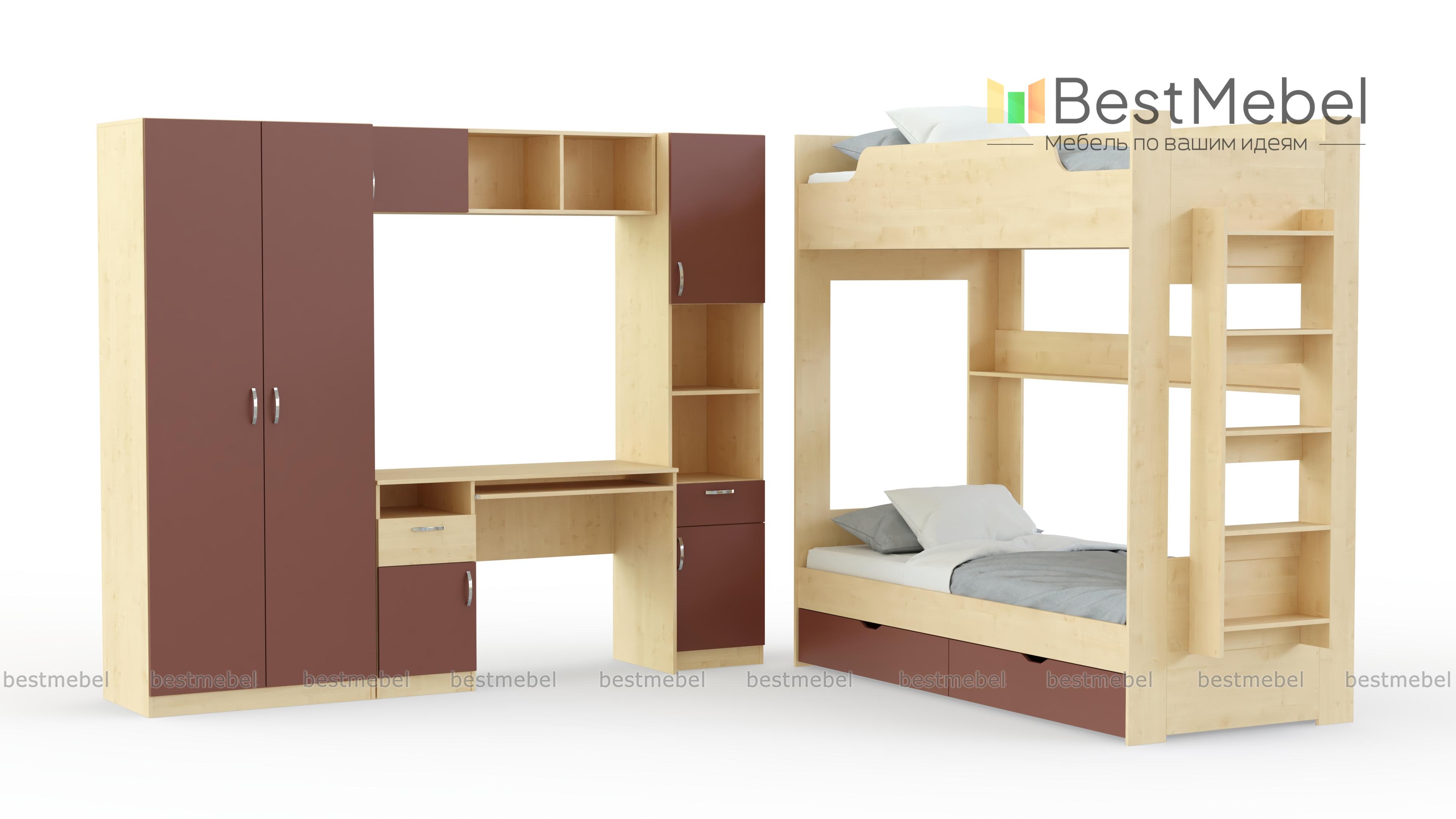 Детская мебель Лотос 8д BMS – отличный выбор для современной комнаты двух детей. В комплект входят двухъярусная кровать с выдвижными ящиками и открытой полкой, компьютерный стол с тумбой, комбинированный пенал, антресольная секция и распашной шкаф для одежды. Все предметы выполнены в сочетании корпуса древесных тонов и ярких фасадов, а разнообразие цветовых решений позволит гармонично вписать мебель в интерьер. Купить детскую мебель Лотос 8д BMS приглашаем по лучшей цене в наш интернет-магазин.