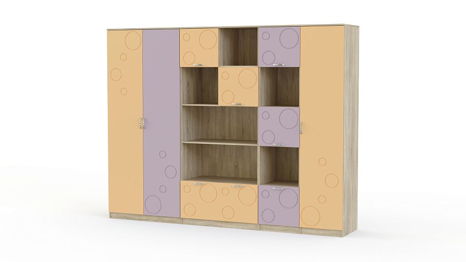 Детская стенка Спринт 1-07 BMS – это современный дизайн и продуманная система хранения, которая удобно разместит вещи ребенка – от предметов гардероба до книг и игрушек. Комплект выполнен в традиционном сочетании корпуса светлых древесных оттенков и пастельных, спокойных цветных фасадов, украшенных неброским симпатичным рисунком. Детская представляет собой композицию из двухдверного платяного шкафа, пенала с полками, комбинированного книжного шкафа и стеллажа с открытыми и глухими отделениями. Купить детскую стенку Спринт 1-07 BMS вы всегда сможете в нашем интернет-магазине.