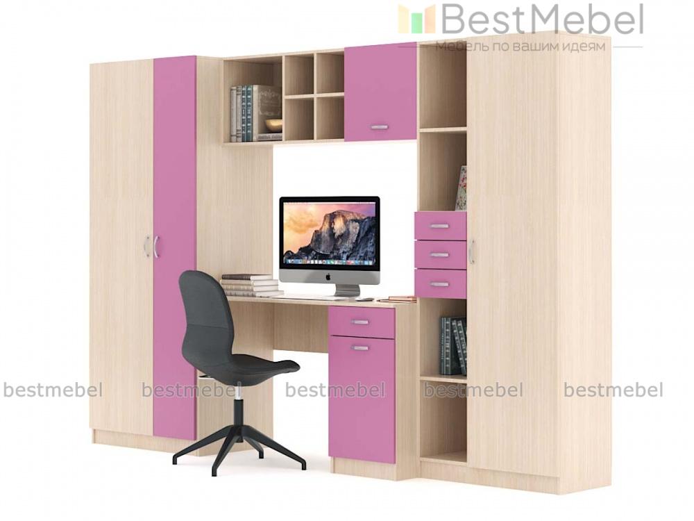 Вместительная и функциональная детская стенка Симба Композиция 1 BMS решит в комнате ребенка проблемы с размещением рабочего места и хранением самых разнообразных вещей. В комплект входят письменный стол с тумбой, комбинированный стеллаж, навесная полка и двухдверный одежный шкаф. Книги, игрушки, школьные принадлежности и предметы гардероба всегда будут в порядке и под рукой. Не оставит равнодушными детей и взрослых и яркая, контрастная расцветка фасадов.
