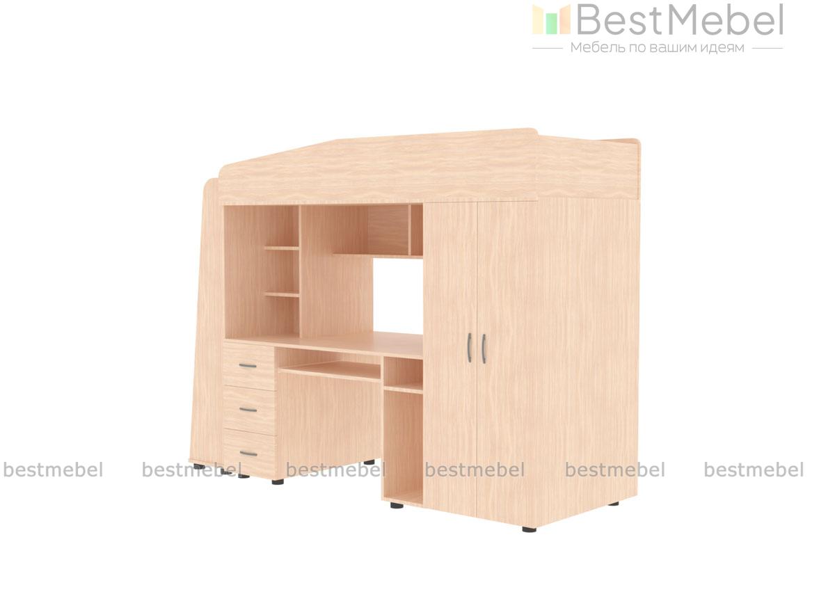 Кровать-чердак Миф-1 BMS объединила в компактной композиции все необходимое для полноценного сна, учебы и хранения гардероба ребенка. Практичное решение для современной детской, комплект включает в себя кровать второго яруса с защитными бортиками, приставную лестницу, компьютерный стол с тумбой и нишами, книжные полки и распашной шкаф для одежды. Универсальное исполнение в древесных тонах поможет гармонично вписаться в меблировку разного типа. Купить кровать-чердак Миф-1 BMS приглашаем в наш интернет-магазин с учетом необходимых параметров.