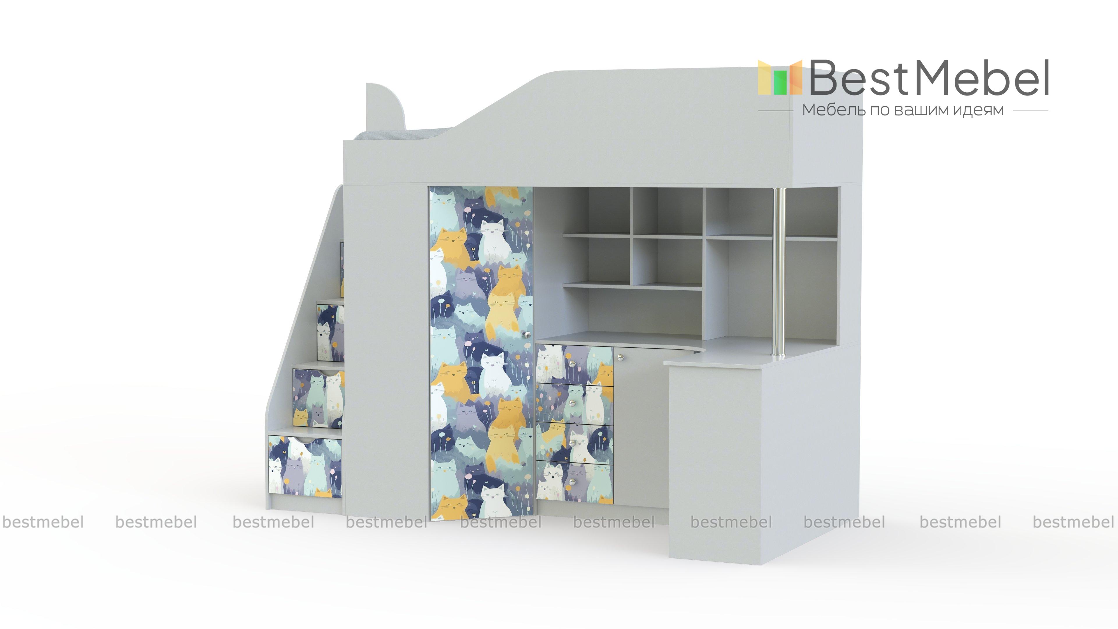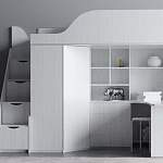 Кровать-чердак с рабочей зоной Мираж 4 BMS – это зона отдыха, рабочее место и удобная система хранения в одной продуманной до мелочей композиции. Практичная модель выполнена в нейтральных тонах и выгодно использует пространство благодаря угловой форме. В комплекте спальное место со скругленным бортиком, шкаф для одежды, лестница-комод и письменный стол с тумбой, книжными полками и эргономичным вырезом столешницы. Купить кровать-чердак с рабочей зоной Мираж 4 BMS приглашаем в наш интернет-магазин.