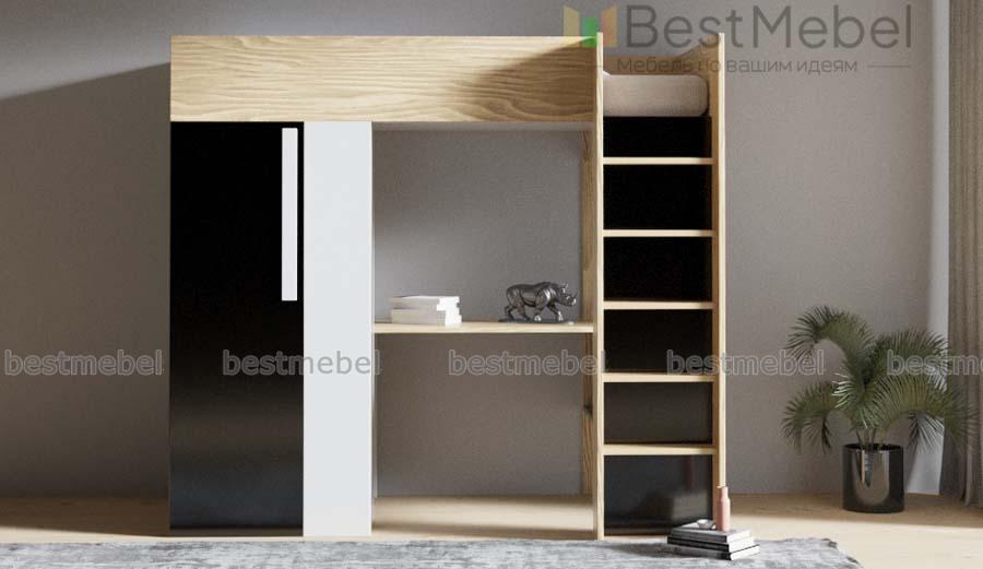 Кровать-чердак со столом и шкафом Дропс-2 BMS – практичная идея организации пространства для небольшой квартиры. Двухъярусная модель представляет собой полноценную мини-комнату, оборудованную всем необходимым для сна, учебы и хранения детских вещей. Композиция объединила просторное спальное место с бортиками и лестницей, распашной шкаф для одежды и рабочую зону с компьютерным столом. Купить кровать-чердак со столом и шкафом Дропс-2 BMS вы сможете в нашем интернет-магазине по отличной цене.