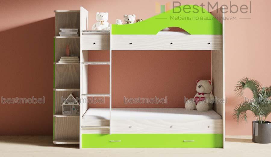 Кровать с ящиками и шкафом Нико-1 BMS поможет вам максимально эффективно использовать доступное пространство. Модель оборудована двумя спальными местами, расположенными друг над другом и соединенными лестницей с металлическими перекладинами. В основании кровати имеются выдвижные ящики для хранения постельного белья или игрушек, а практичным дополнением станет торцевой шкаф с распашным отделением для одежды, нишей и стеллажом. Купить кровать с ящиками и шкафом Нико-1 BMS приглашаем в наш интернет-магазин, подобрав оптимальное цветовое решение.