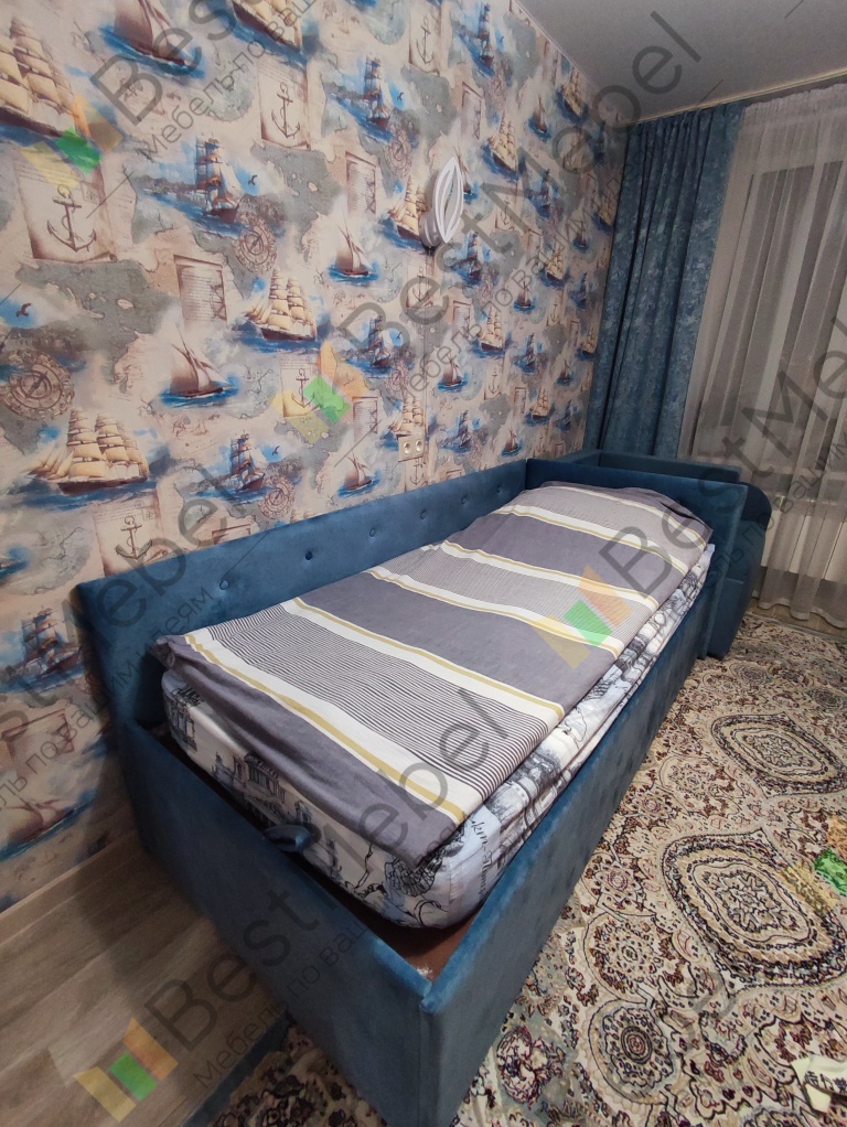 Купили сыну кровать "София", она гармонично вписалась в интерьер. Сделана качественно, ткань подобран под цвет комнаты (в магазине большой ассортимент ткани). Очень большой ящик для белья с подъемным механизмом. Доставили почти собранную, осталось только стенки приделать.К покупке рекомендую.Заказ 00000610621