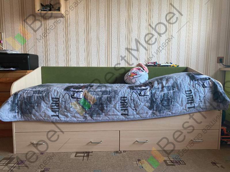 Отличная кровать для подростка, широкое спальное место (мы заказали метровое), вместительные ящики для белья, с мягкой спинкой дети сидят как на диване, изготовили кровать быстро, по нашим размерам