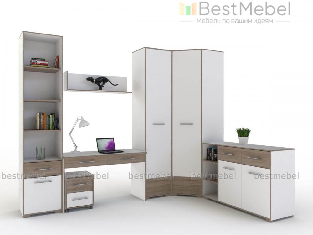 Модульная детская Кубу-2 BMS поможет создать комфортное рабочее место и решить проблему хранения разнообразных вещей. Геометричная композиция в модном сочетании белого и древесных тонов состоит из письменного стола с ящиками и выкатной тумбой, навесной полки, книжного стеллажа, углового шкафа для одежды и постельных принадлежностей и комбинированного комода с полками. Экологичные и износостойкие материалы станут гарантией долговечности и простоты ухода. Купить модульную детскую Кубу-2 BMS приглашаем в наш интернет-магазин по отличной цене.
