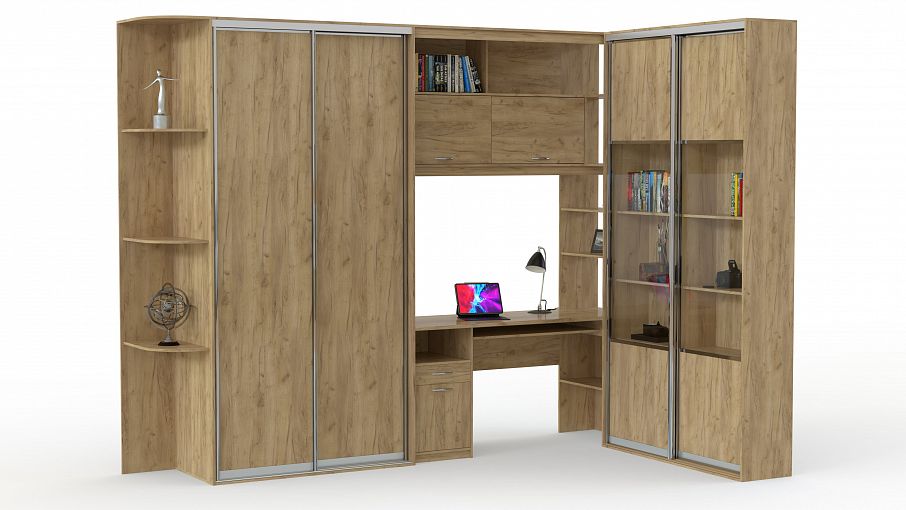 Шкаф-купе со столом Плюс BMS представляет собой многофункциональную композицию, объединившую рабочую зону с системой хранения. Угловая модель поможет оборудовать современную подростковую комнату, эффективно используя доступное пространство. В комплекте шкаф-купе для одежды с торцевым стеллажом, застекленный книжный шкаф и компьютерный стол с тумбой и полками. Лаконичный дизайн и расцветка в классических древесных тонах делают шкаф универсальным. Купить шкаф-купе со столом Плюс BMS приглашаем в наш интернет-магазин по доступной цене.