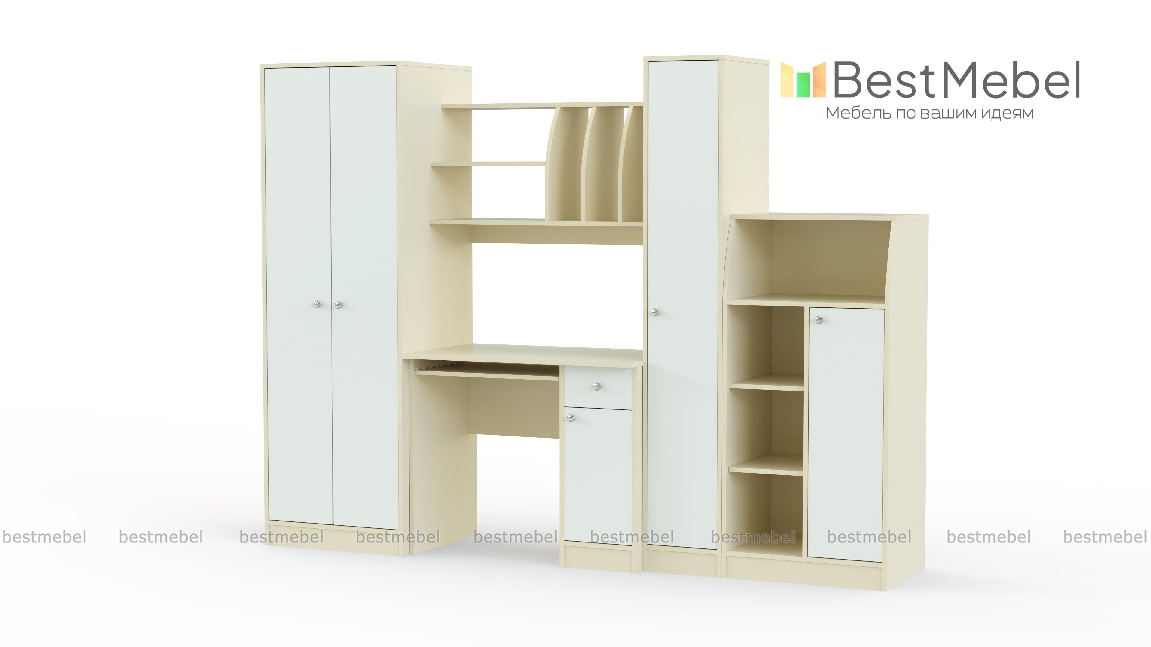 Стенка Канди BMS поможет вам грамотно зонировать пространство детской. Среди модулей комплекта компьютерный стол, навесная полка для папок и тетрадей, пенал и платяной шкаф, а также многофункциональный низкий шкафчик под книги и игрушки. Нейтральные базовые оттенки и яркие цвета в отделке корпуса и фасадов создают комфортную для учебы и отдыха атмосферу. Купить стенку Канди BMS, подобрав нужные размеры и цветовую гамму, приглашаем на сайт нашего интернет-магазина.