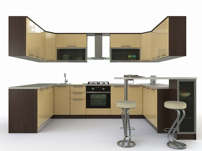 Кухня с барной стойкой Лена BMS – современная модель П-образной формы для просторной студии. Особенность композиции – строгие четкие линии и минималистичный дизайн фасадов. Простоту форм эффектно подчеркивает цветовое решение – темные древесные тона и ванильный глянец с прозрачными вставками витрин в серебристых рамках. Элегантная деталь – приставная барная стойка на хромированной опоре, удобная для быстрых завтраков. Купить кухню с барной стойкой Лена BMS вы сможете в нашем интернет-магазине, подобрав оптимальные параметры.